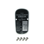 Type/ID Plate w/ Holes + Fixing Nail + Stamped Numbers for Simson SR50