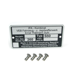 Type Plate + 4mm Punch Number Set for Simson 425 AWO Sport