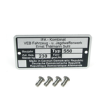 Simson S50 Type Plate with 4 Rivets – Mass 260 kg