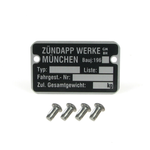 Name: Zündapp type plate with 4 rivets Description: Replacement motorcycle nameplate for Zündapp models