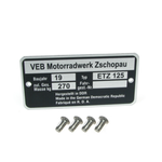 Typenschild mit 4 x Kerbnagel für MZ ETZ125
