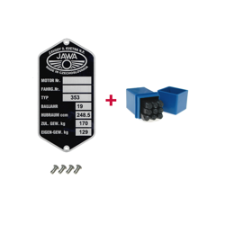 Tabliczka znamionowa + zestaw numerów udarowych 4 mm + z 4 gwoździami karbowanymi do Jawa 50 typ 20