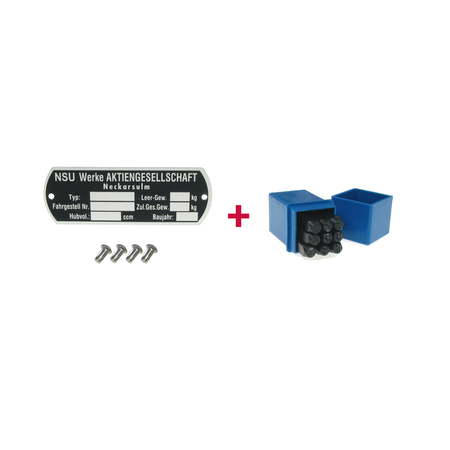 Tabliczka znamionowa + numery stempli + gwóźdź karbowany dla NSU Werke AG Neckarsulm | okrągły