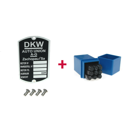 Tabliczka znamionowa + wybite numery + gwóźdź karbowany dla DKW Auto Union Zschopau