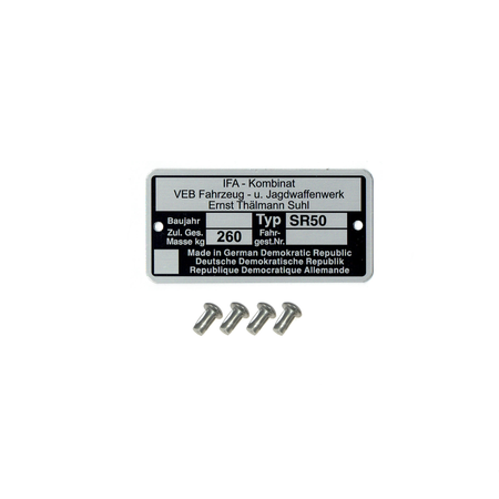 Tabliczka znamionowa (z otworami) + gwóźdź karbowany + numerator odpowiedni dla Simson SR50