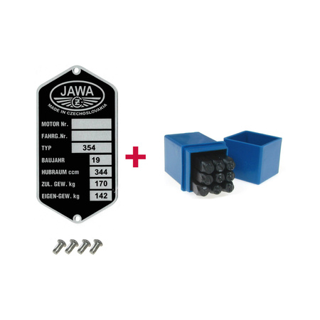 Tabliczka znamionowa + numery uderzeń + karbowany gwóźdź do Jawa 354 Kyvacka
