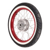 Opis: Tylne kompletne koło 1,5x16" z anodowaną na czerwono aluminiową obręczą, szprychami ze stali nierdzewnej i oponami Mitas MC2 z białymi ścianami. Idealny do zabytkowych modeli Simson.
