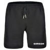 Stylowe krótkie damskie hotpants w klasycznej czerni, ozdobione białym logo "SIMSON" na jednej z nogawek. Te hotpants oferują komfortowe dopasowanie i są idealne dla fanów Simsona.